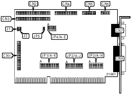 | 40-pin secondary IDE(AT) connector | CN3 | 25-pin parallel port A - external | CN8 |