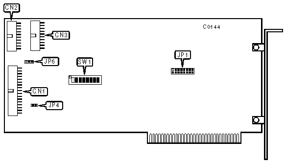Note:This controller has a built-in, low-level format program. To enter the program run the DEBUG utility supplied with DOS and at the prompt enter: G=C800:5 SW1/switch 8 must be "on" before power-up to enable the drive splitting feature. | |||||||||