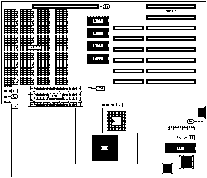 Note : There were two versions of this board made, one that had 1MB of DIPP DRAM installed and one that had 4MB of DIPP DRAM installed. The 1MB version could be upgraded by the factory to support 4MB of DIPP DRAM. | ||