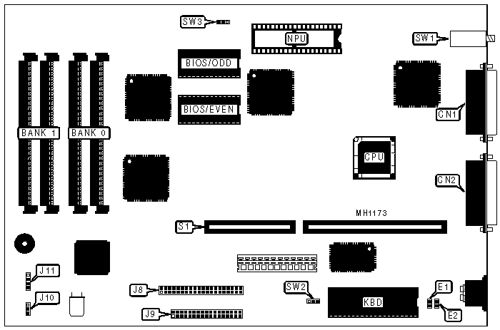 | Floppy drive interface | J9 | Reset switch | SW1 |