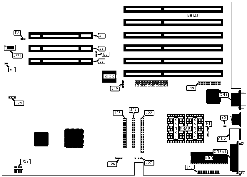 32-bit external CPU/Memory module slot, 32-bit external Memory module slot (2) bus mouse port, floppy drive interface, IDE interface, parallel port, serial port (2), SVGA port |