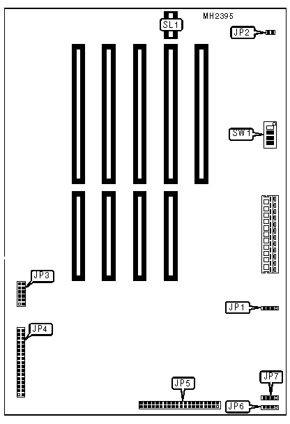 | Floppy drive interface | JP4 | External CPU card slot | SL1 |