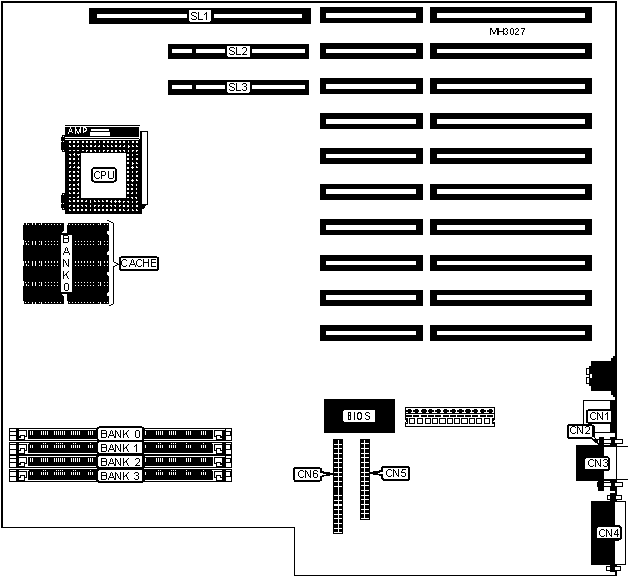 32-bit slot, 32-bit VESA local bus slots (2), floppy drive interface, IDE interface, parallel port, PS/2 mouse port, serial ports (2)