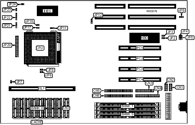 32-bit PCI slots (4), floppy drive interface, green PC connector, IDE interfaces (2), parallel port, serial ports (2), cache slot