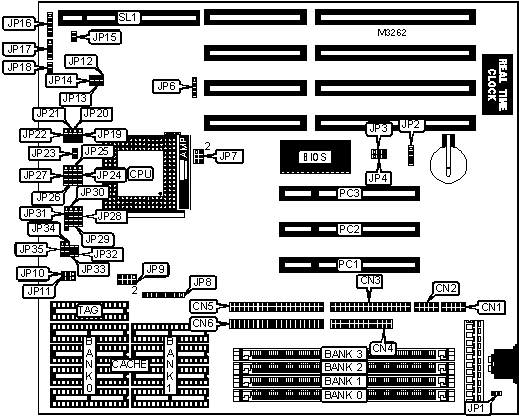 32-bit VESA local bus slot, 32-bit PCI slots (3), floppy drive interface, green PC connector, IDE interfaces (2), parallel port, serial ports (2) |