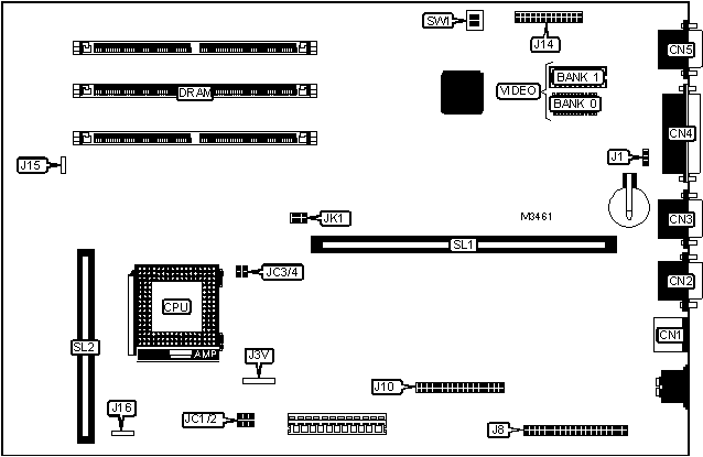 Note: If a VGA processor is enabled, SW1/2 has no function. If the VGA controller is disabled, and a CGA or MDA controller is installed, set the switch to the above setting. | |||