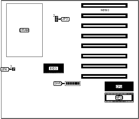 Note: Board accepts 256KB & 640KB memory. The size and number of chips is unidentified. The location of the banks are unidentified. |