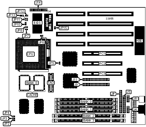 32-bit PCI slots (3), floppy drive interface, green PC connector, IDE interfaces (2), parallel port, serial ports (2)