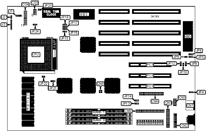 32-bit PCI slots (3), floppy drive interface, IDE interface, parallel port, PS/2 mouse port, serial ports (2) |