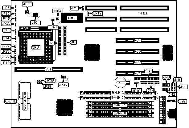 Note: Board accepts EDO memory. Do not install SIMMs & DIMMs at the same time. | ||