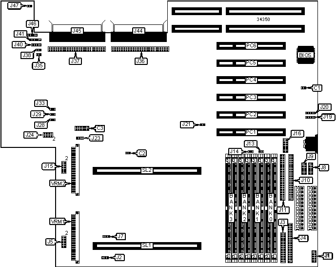Note: Board accepts EDO memory. Do not use 16M x 36 SIMMs that have more than 36 chips per SIMM.