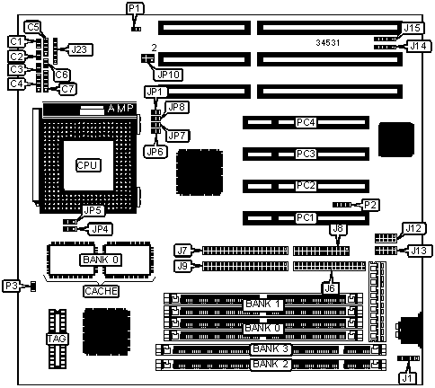 Note: Board accepts EDO memory. Banks are interchangeable.