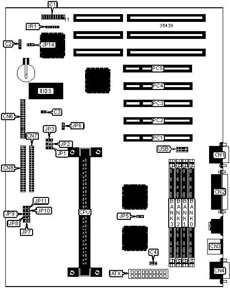 | CMOS memory clear | JP14 | Pins 2 & 3 closed | |