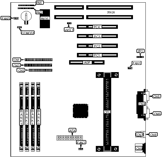| IDE interface 2 | CN2 | 32-bit PCI slots | PC1 - PC5 |
