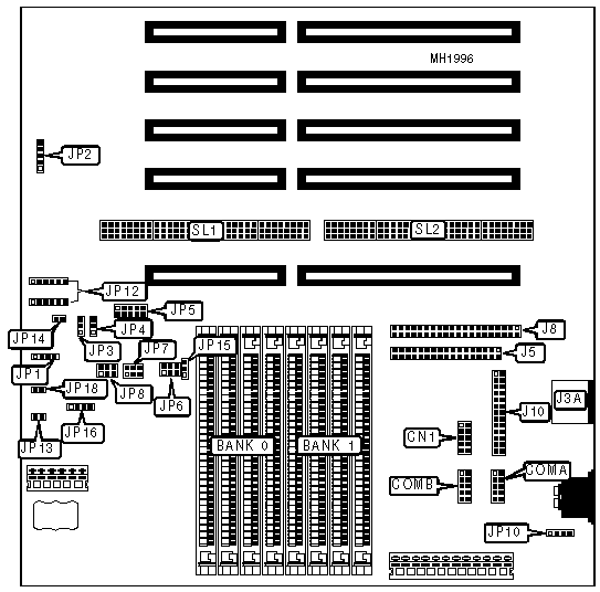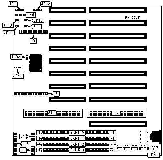 Note:For CPU cards that only support 32MB of RAM, use bank 0 and bank 1 only. Double-sided SIMMs can only be installed in bank 2 and bank 3.