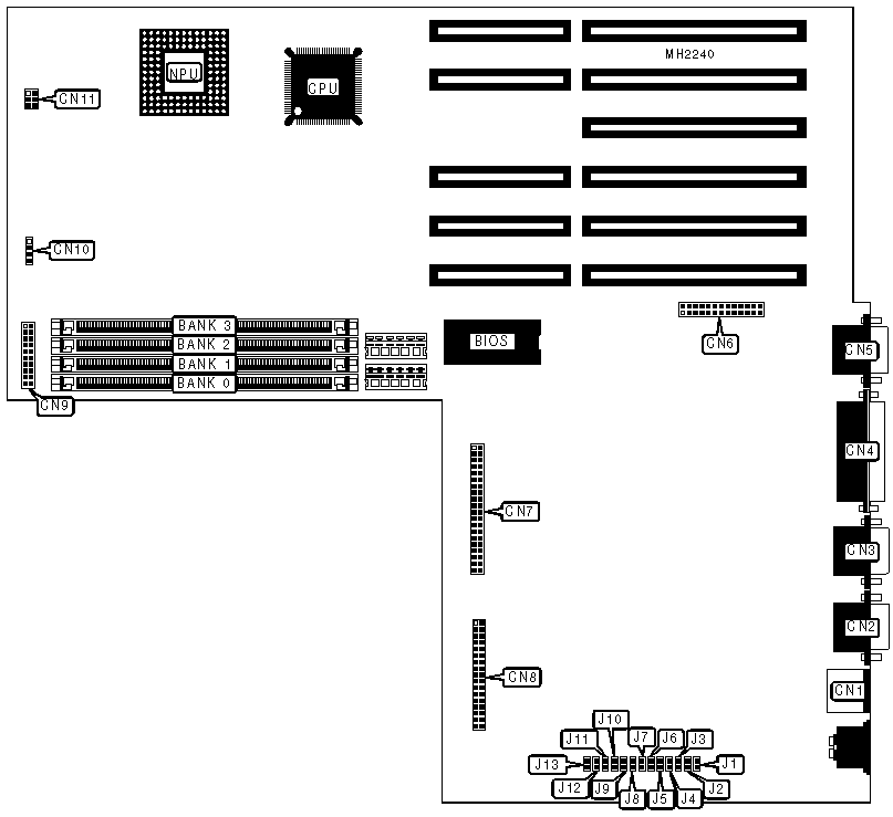 External memory card, floppy drive interface, IDE interface, parallel port, PS/2 mouse port, serial ports (2), VGA feature connector, VGA port |