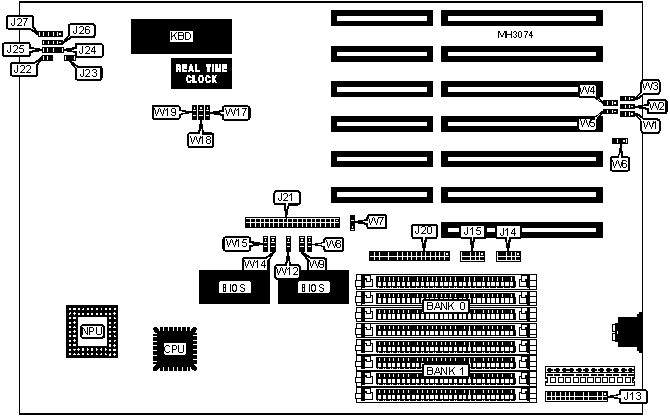 Floppy drive interface, IDE interface, parallel port, serial ports (2)