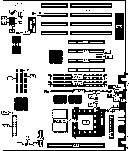 Note: Board accepts EDO memory. Banks 0 & 1 are interchangeable.