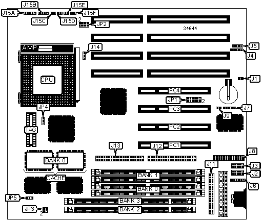 Note: Board accepts EDO memory. Do not install SIMMs & DIMMs at the same time. | ||