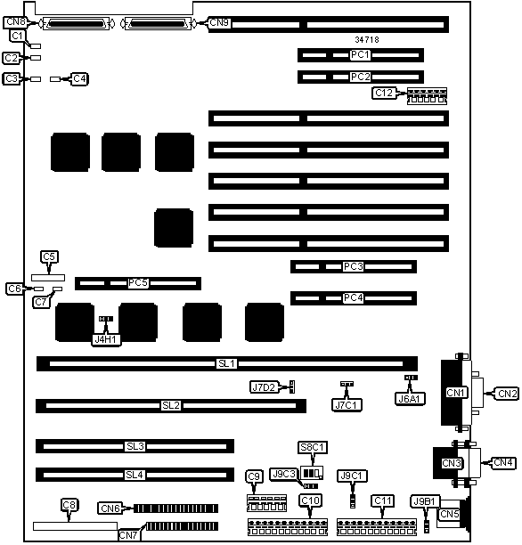 Note: Board accepts EDO memory. Memory is located on external memory cards.