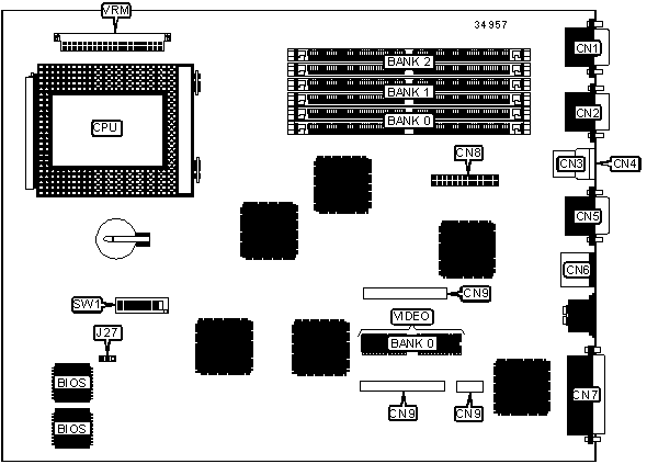 Note: 1MB video memory is factory installed and is not configurable. To increase to 2MB, install upgrade module at CN9.