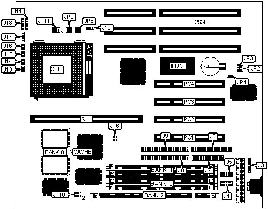 32-bit PCI slots (4), floppy drive interface, green PC connector, IDE interfaces (2), parallel port, PS/2 mouse interface, serial ports (2), IR connector