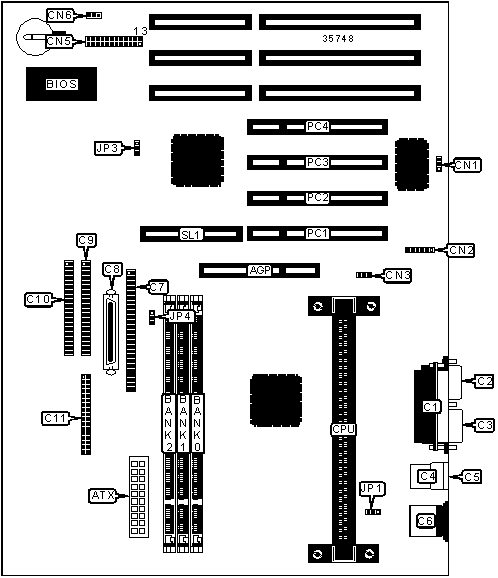 32-bit PCI slots (4), floppy drive interface, green PC connector, IDE interfaces (2), SCSI interface, Wide Ultra SCSI interface, parallel port, PS/2 mouse port, serial ports (2), IR connector, USB connectors (2), ATX power connector, AGP slot, RAID slot |