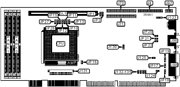 Floppy drive interface, IDE interfaces (2), parallel port, serial ports (2), cache slot, VRM connector