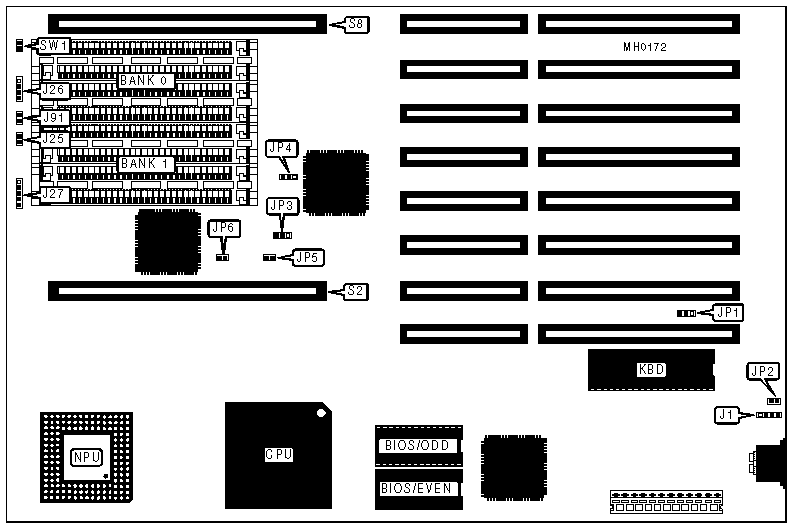 Note: Proprietary external cache card fits in expansion slot S2 only. Pins designated should be in the closed position.