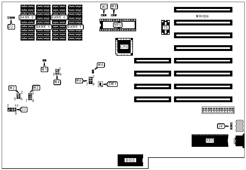 Note: NPU speed must equal the speed of oscillator Y5 divided by 3. The location of J4 is unidentified.