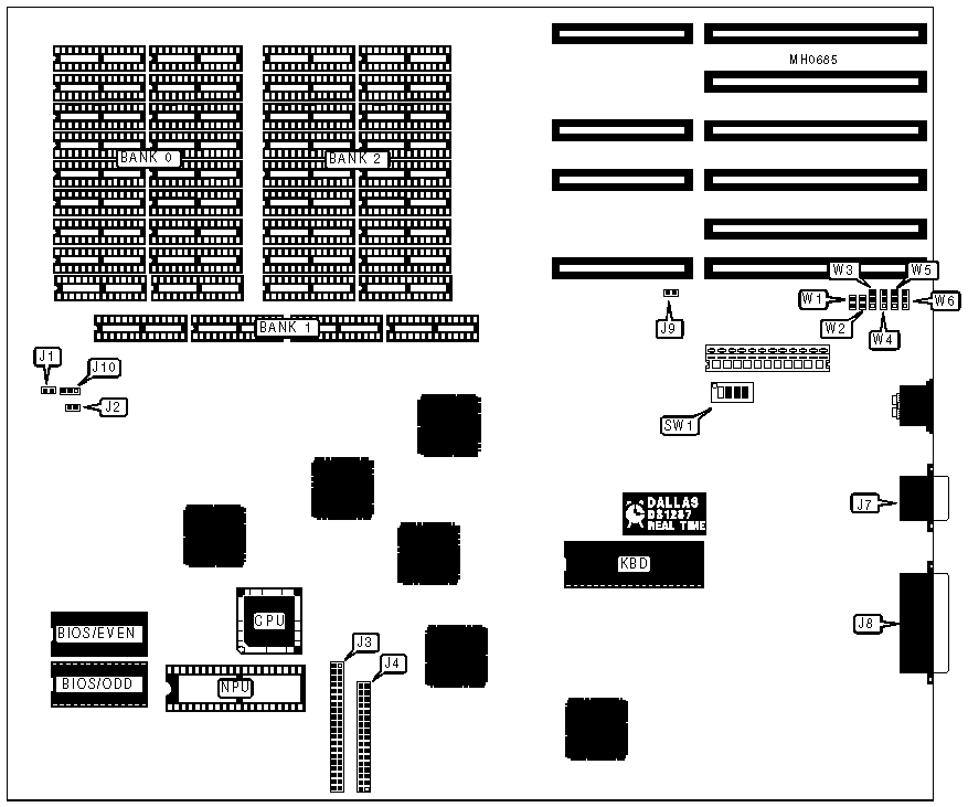 | » | Parallel port select LPT1 | W4 & W5 | pins 1 & 2 closed |