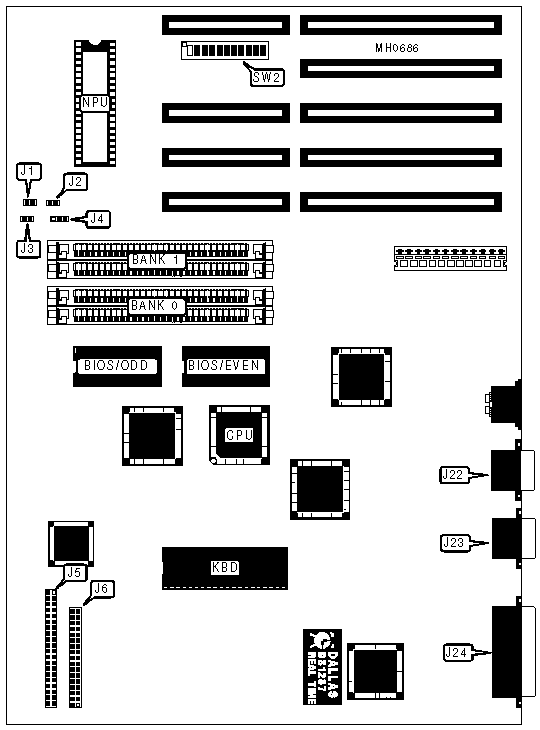 | Reset switch | J1 | Floppy drive interface | J6 |
