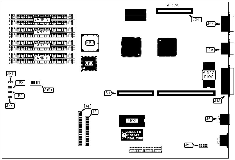 | Floppy drive interface | J3 | Video feature port (8514) | J24 |