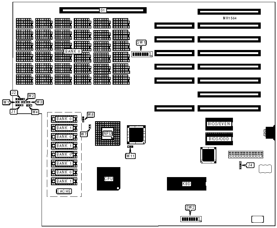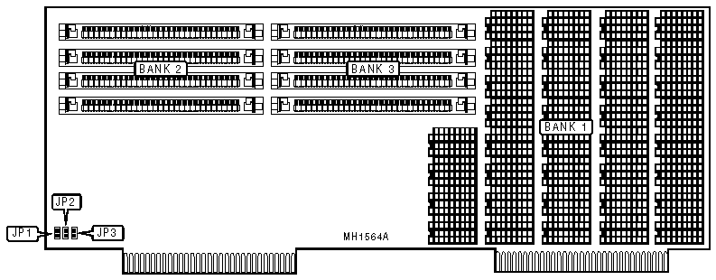 | Note: JP1, JP2, JP3, Bank 1, Bank 2, and Bank 3 are located on the 32-bit external memory card. | ||||||