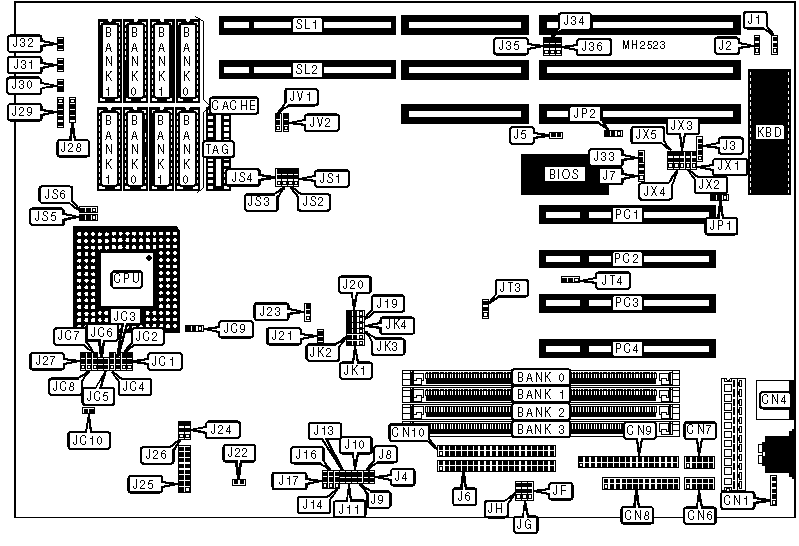 Note: Use pull down setting if PCI card is installed. Pins designated should be in the closed position. | |||||