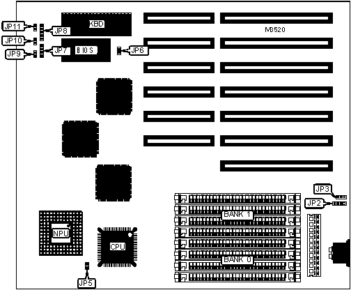 | CMOS memory clear | JP3 | Pins 2 & 3 closed | |