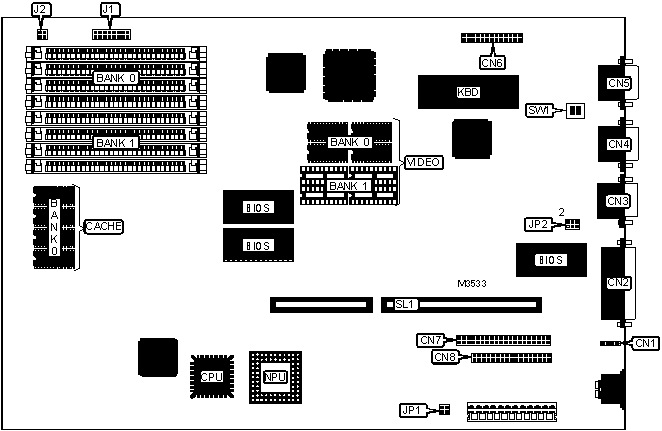| Serial port 2 | CN3 | Front panel LEDs | J1 |