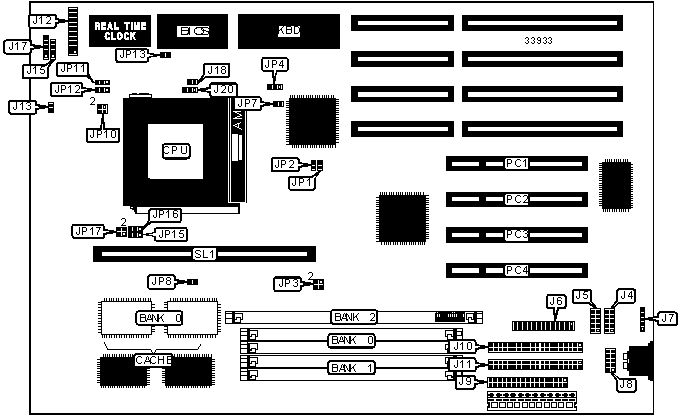 32-bit PCI slots (4), floppy drive interface, green PC connector, IDE interfaces (2), parallel port, PS/2 mouse interface, serial ports (2), cache slot, IR connectors (2), USB connector |