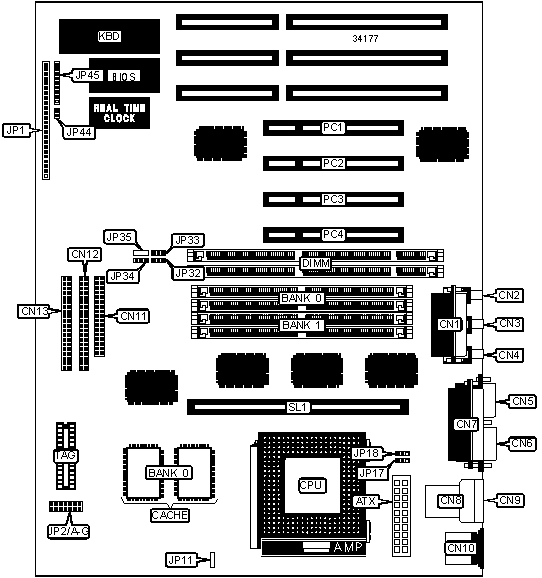Note: The location of banks 2 & 3 are unidentified. Do not install DIMMs & SIMMs at the same time. | ||