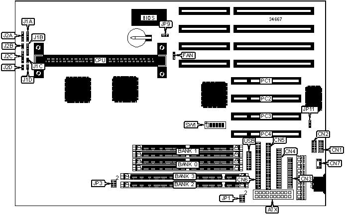 | Note: The location of the factory configured jumpers are unidentified. | |||