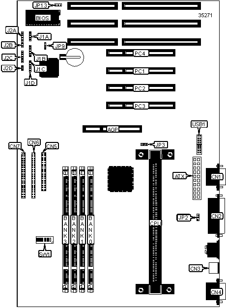 | PS/2 mouse port | CN3 | Reset switch | J2B |