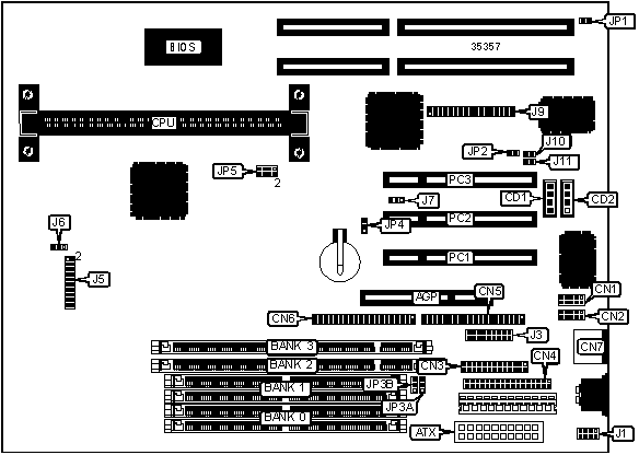 | CMOS memory clear | JP4 | Pins 2 & 3 closed | |