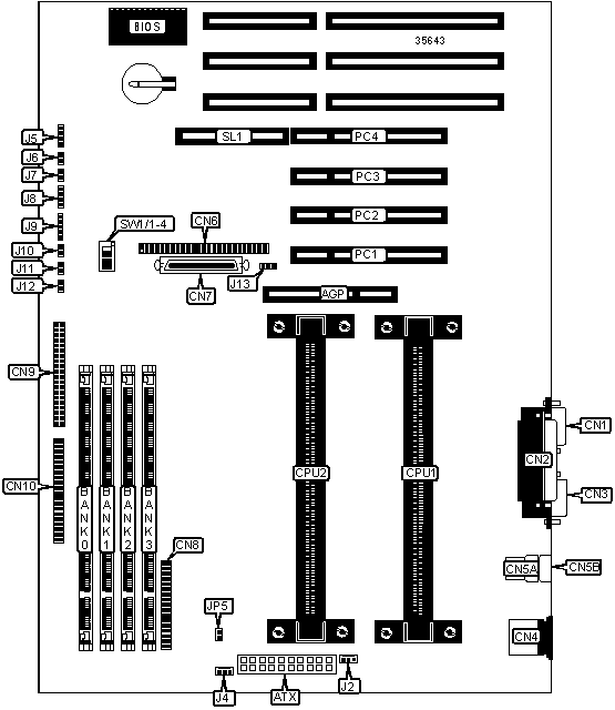 32-bit PCI slots (4), floppy drive interface, IDE interfaces (2), Wide Ultra SCSI interface, Wide SCSI interface, parallel port, PS/2 mouse port, serial ports (2), IR connector, USB connectors (2), ATX power connector, AGP slot, RAID slot |