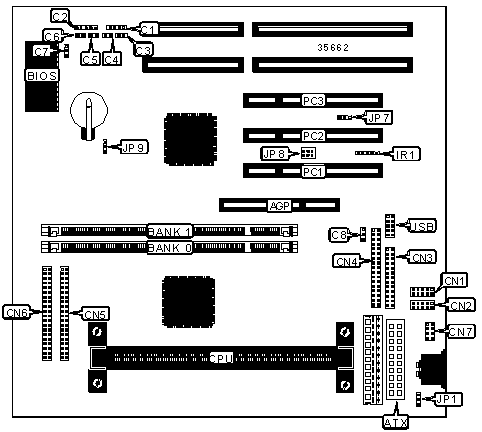 | AGP slot | AGP | Serial port 1 | CN2 |
