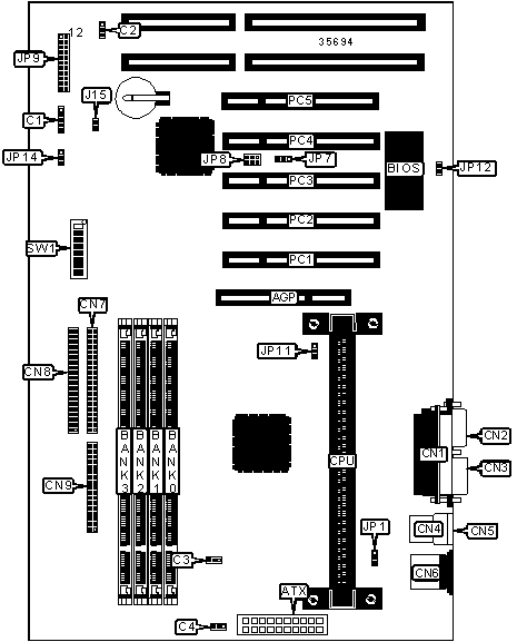 | IDE interface 2 | CN7 | 32-bit PCI slots | PC1 – PC5 |
