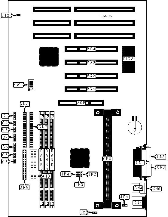 | Parallel port | CN1 | 32-bit PCI slots | PC1 - PC4 |