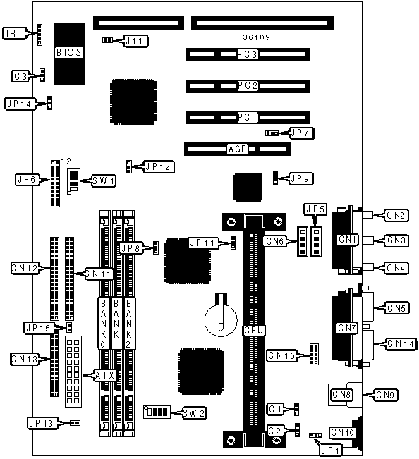 | IDE interface 2 | CN11 | 32-bit PCI slots | PC1 - PC3 |