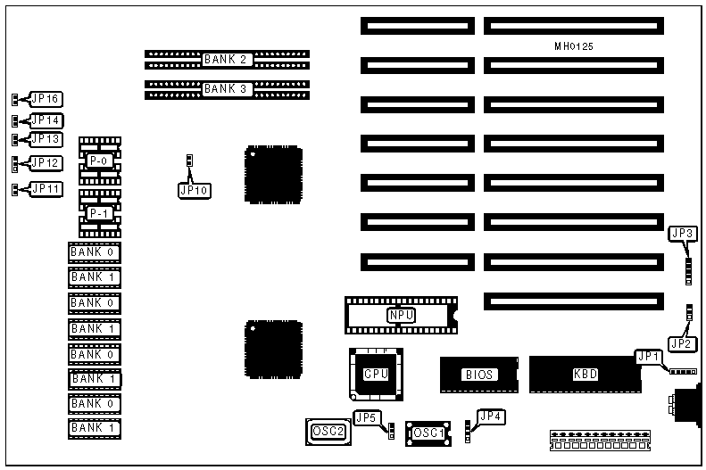 | Power LED & keylock | JP3 | Turbo switch | JP13 |