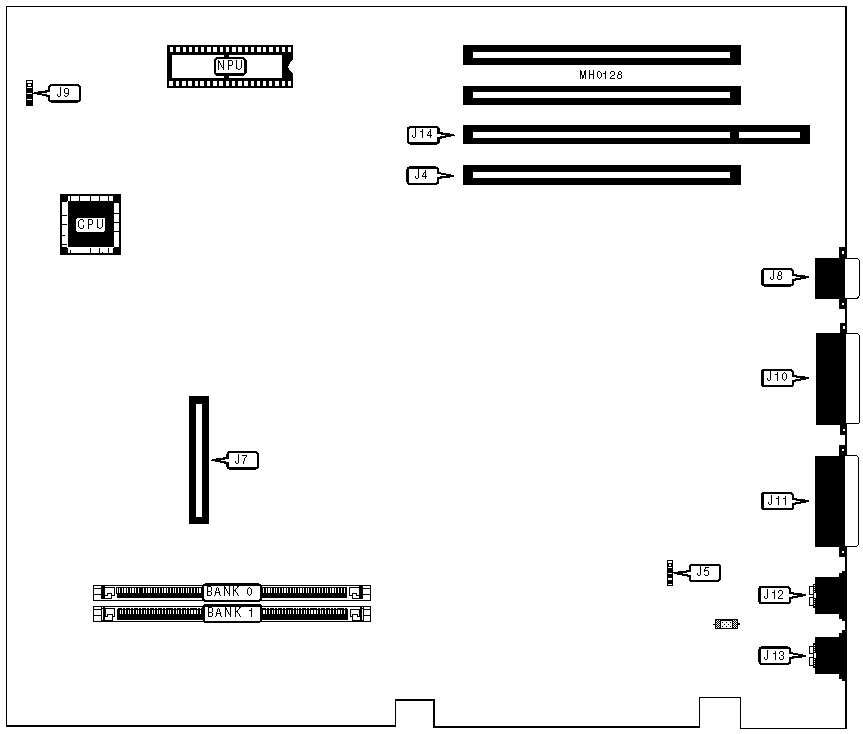 | Battery/speaker | J9 | MCA Video card slot | J14 |