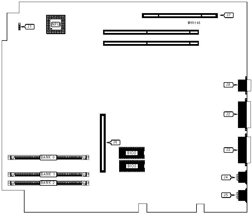 | Serial port | J2 | Hard/floppy drive | J6 |